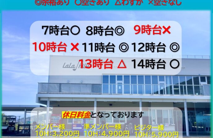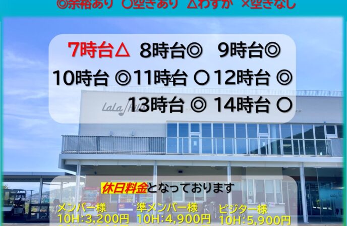 1月10日(土)のご予約状況です
