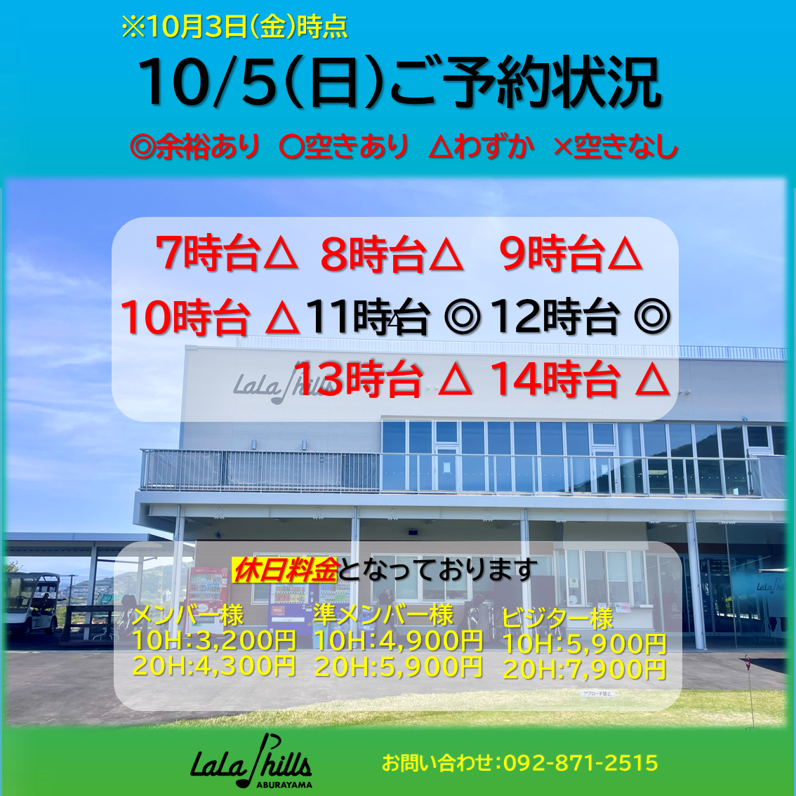 10月5日(日)のご予約状況です🗓️