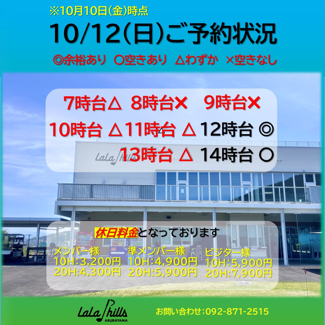 10月12日(日)のご予約状況です🗓️