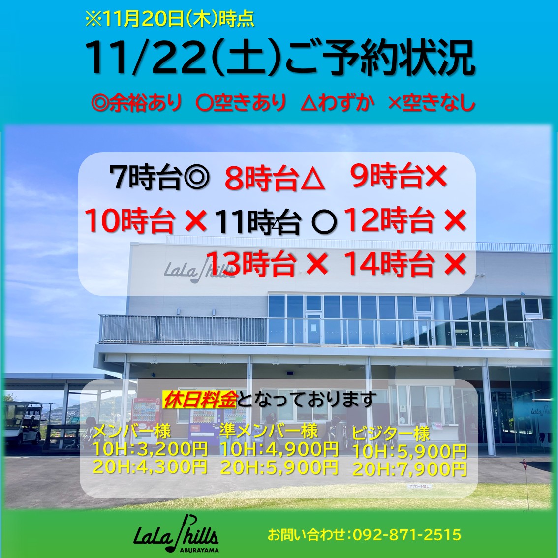 11月22日(土)のご予約状況です🗓️