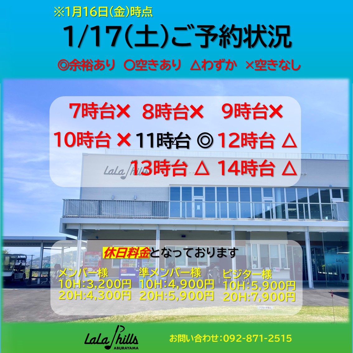 1月17日(土)のご予約状況です🗓️