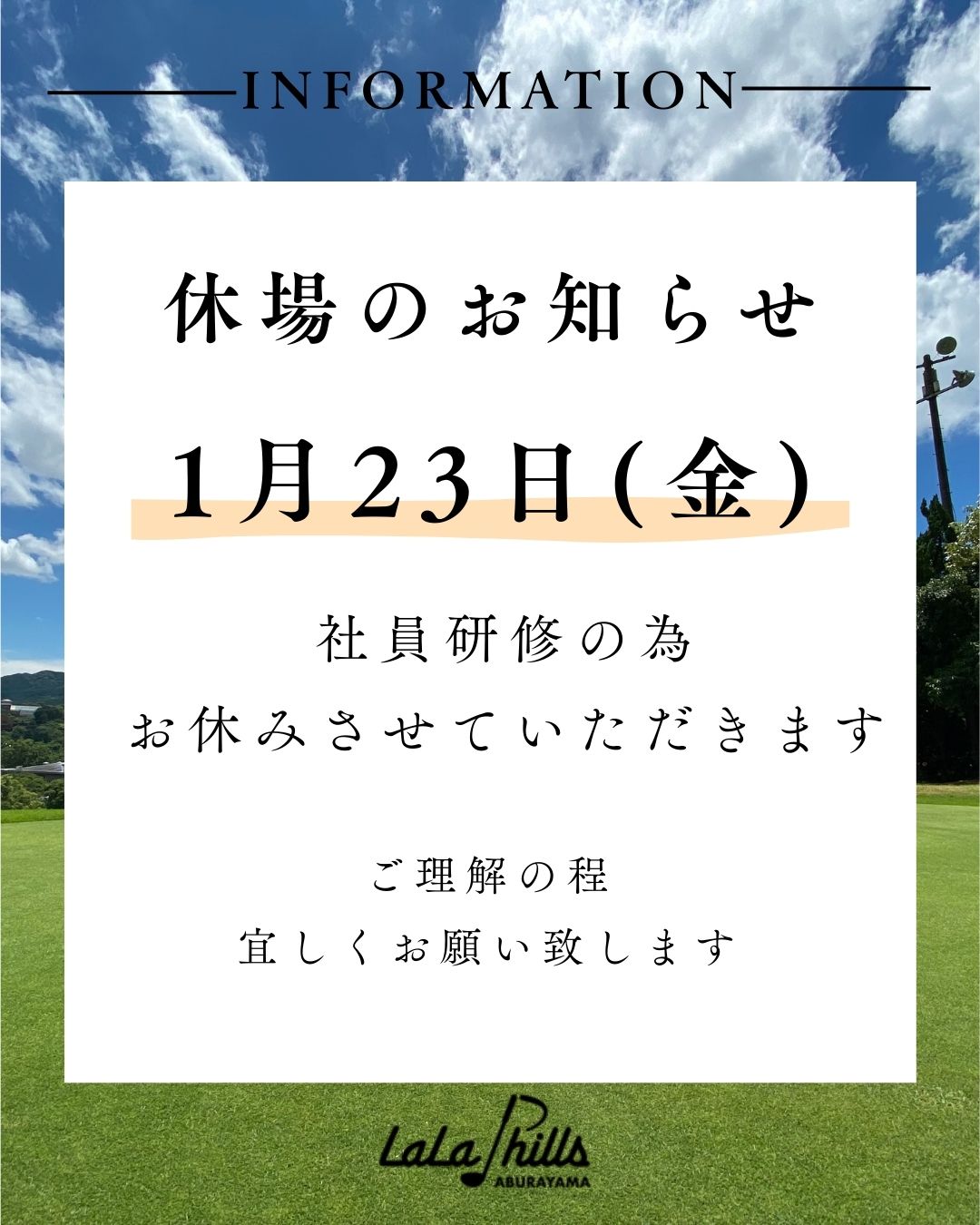 1月23日金曜日は社員研修の為、お休みとなります。