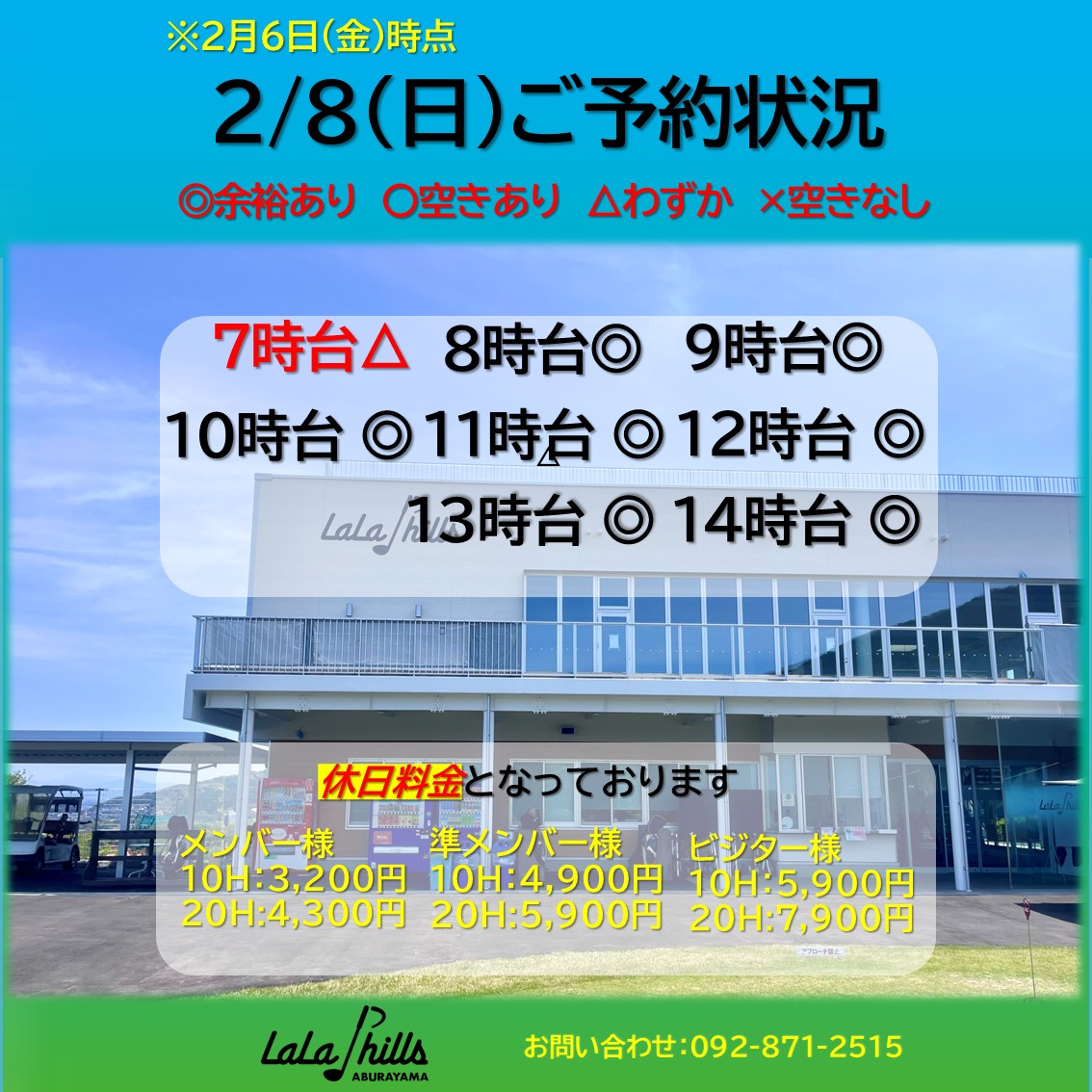 2月8日(日)のご予約状況です🗓️