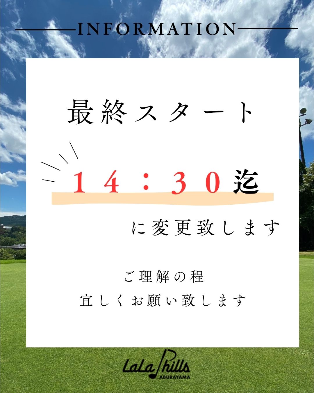 最終スタート時間変更のお知らせ