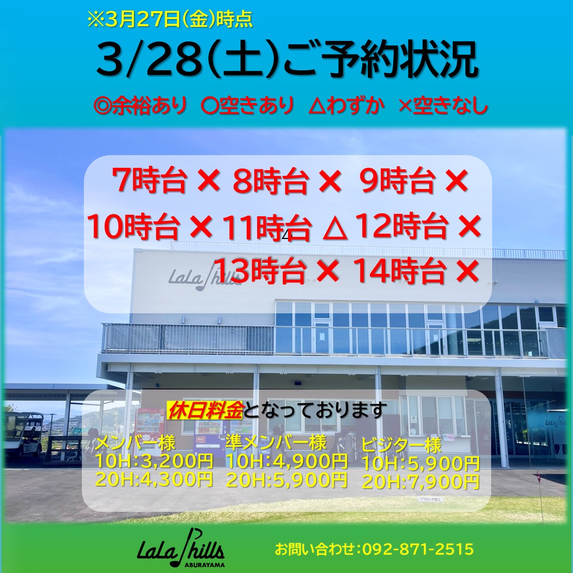 3月28日(土)のご予約状況です🗓️