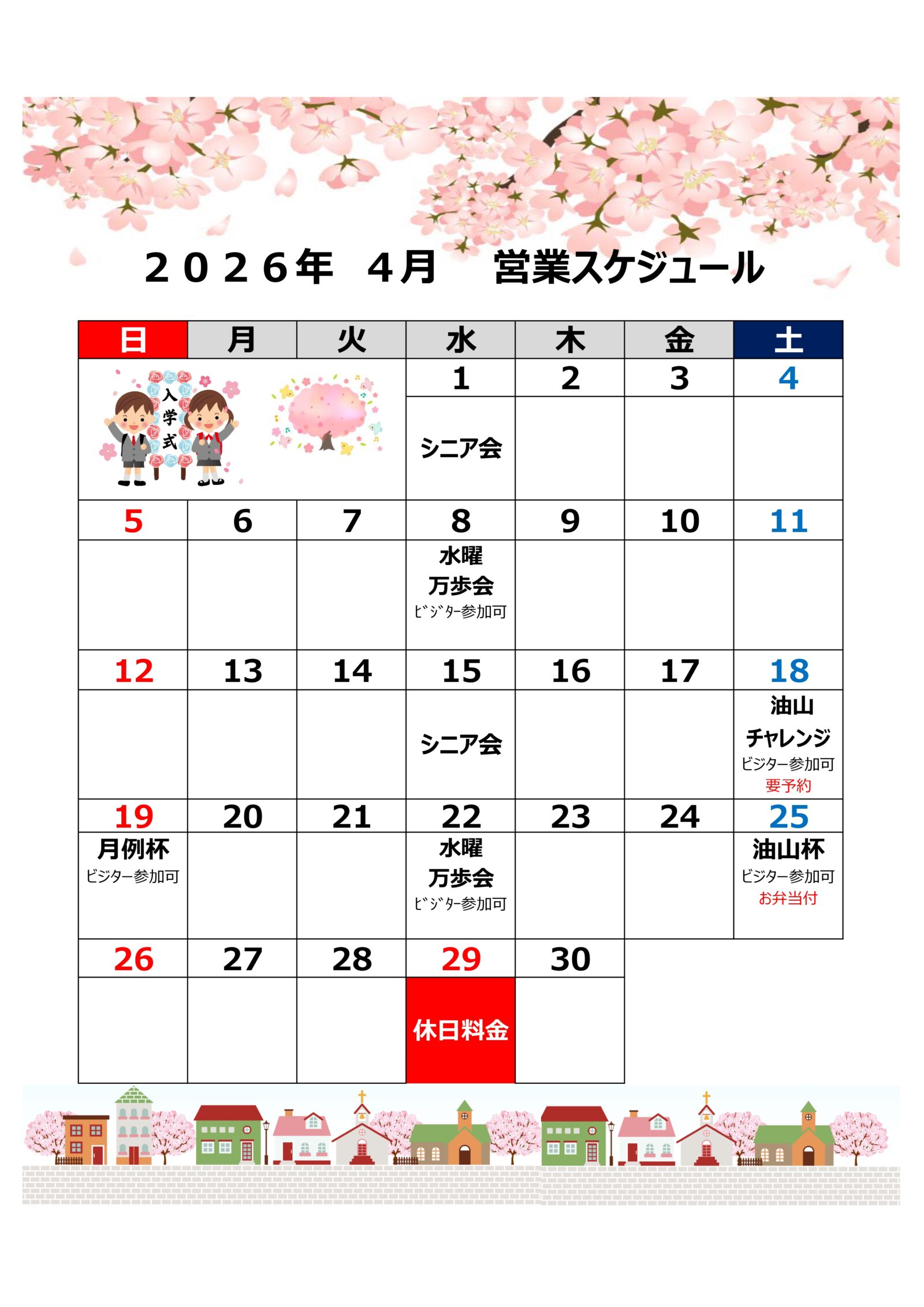 4月の営業スケジュールです
